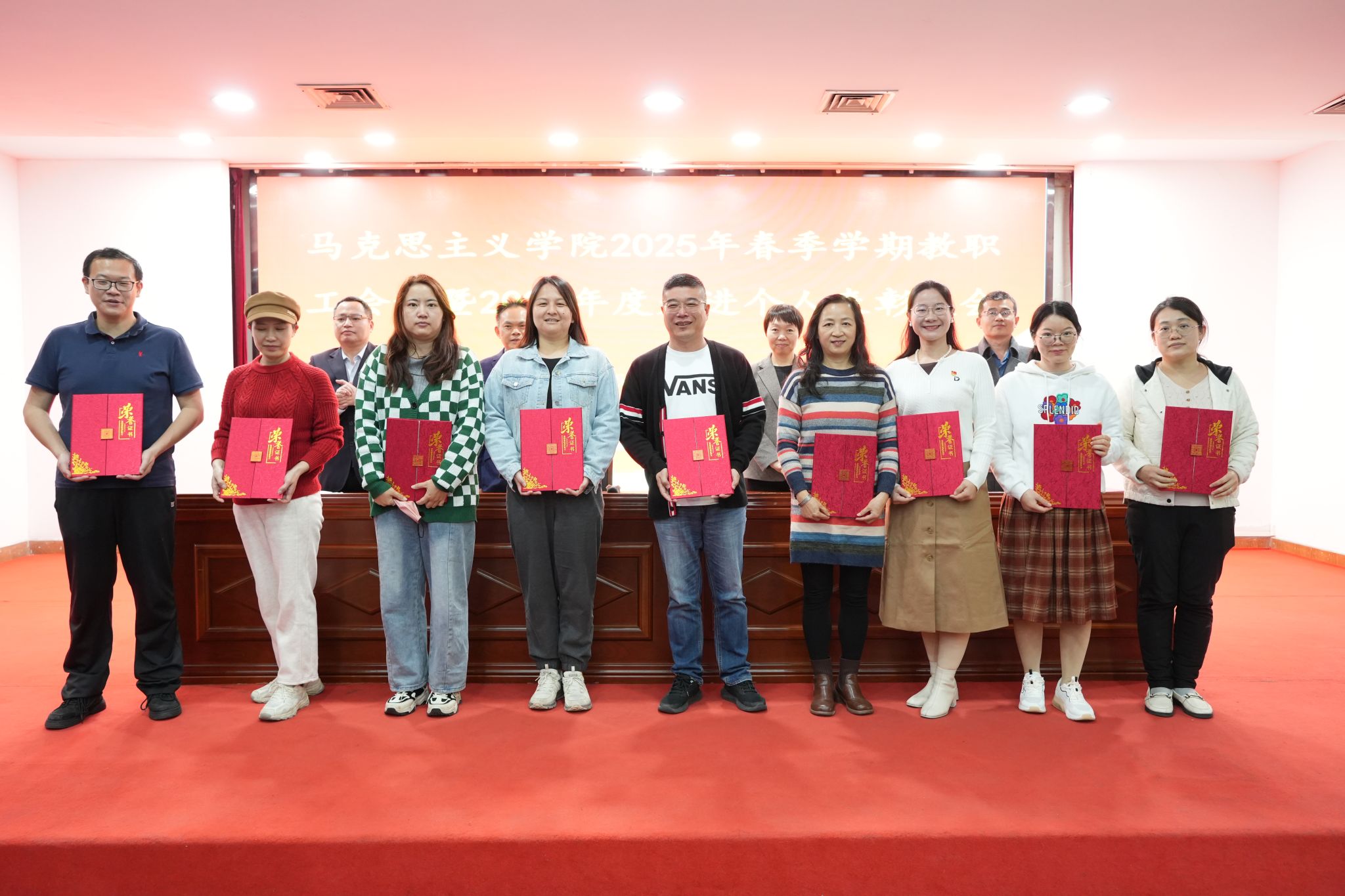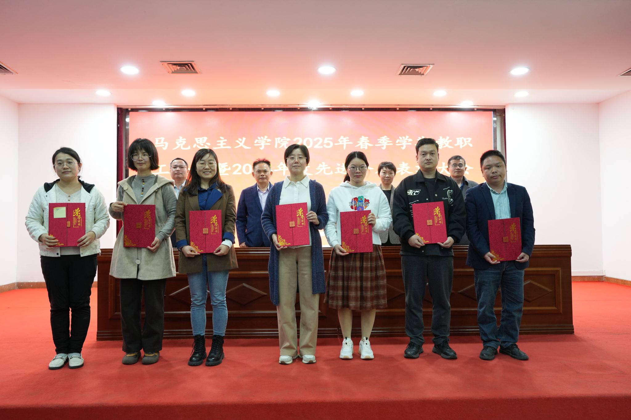 姜晓丽宣读伟德国际victor19462024年度表彰名单,分别对获得公司年度考核优秀个人、教学工作先进个人、科研工作先进个人、新闻宣传先进个人奖的教师和2024年度“大思政课”建设活动优秀指导教师进行了表彰,公司领导为获奖教职工颁发荣誉证书,激励全体教职工在新的一年里,以更饱满的工作热情、更扎实的工作作风,为公司和公司的高质量发展贡献力量。