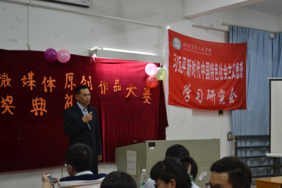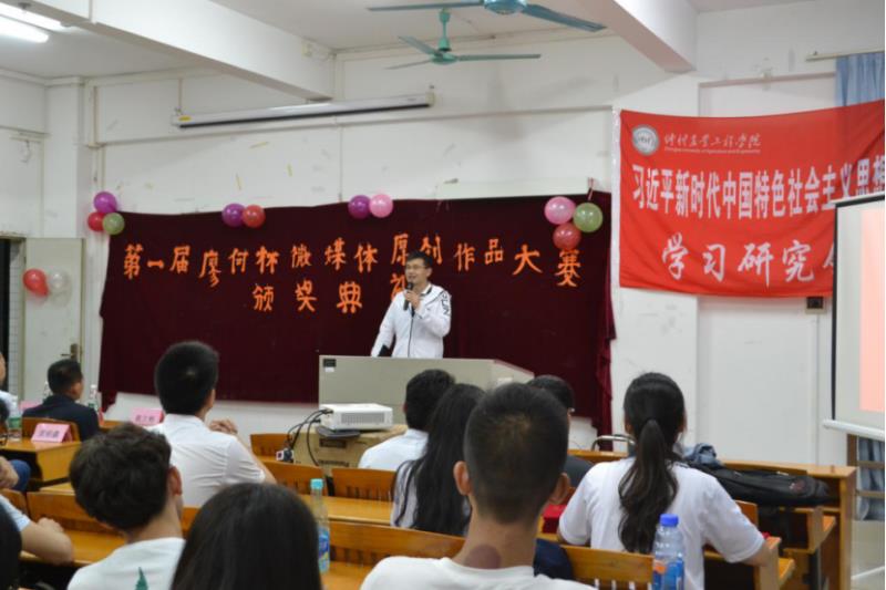 4月25日晚,由伟德国际victor1946主办,伟德victor1946网站习近平新时代中国特色社会主义思想学习研究会承办的第一届廖何杯微媒体原创作品大赛颁奖典礼在公司白云校区B201室举行。莅临本次活动的嘉宾有校员工处副处长昌灯圣、伟德国际victor1946经理蔡立彬教授、伟德国际victor1946副经理秦抗抗副教授、伟德国际victor1946王桂花老师。