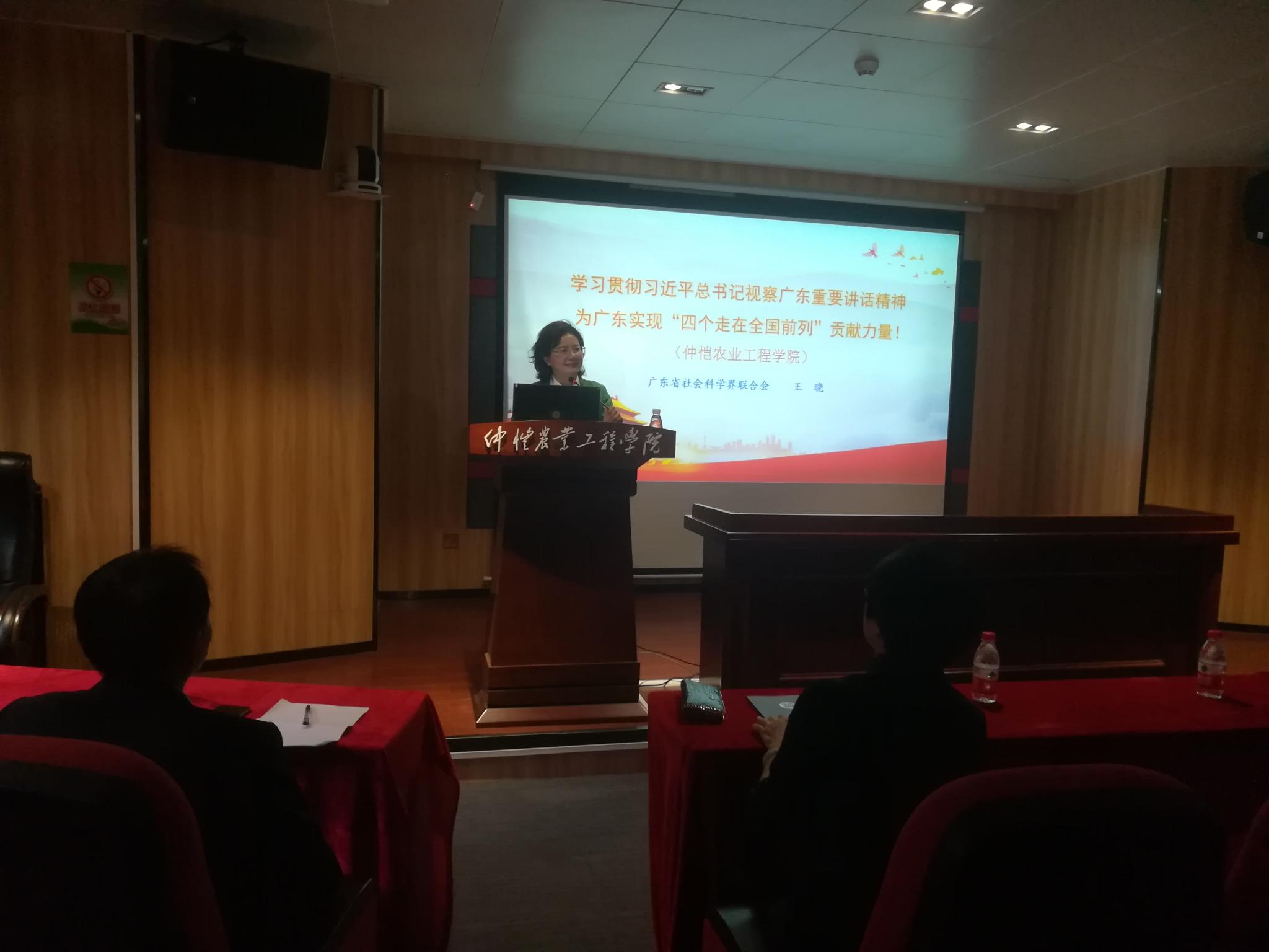 4月18日下午,伟德国际victor1946在英东楼111学术报告厅举行“形势与政策”大讲堂第三讲,讲座主题是“学习贯彻习近平总书记视察广东重要讲话精神——为广东实现‘四个走在全国前列’贡献力量”,由广东省社会科学界联合会党组书记、主席,“习近平总书记视察广东重要讲话精神”省委宣讲团成员王晓同志主讲。报告会由公司党委李海燕副书记主持。伟德国际victor1946全体教职工、各公司辅导员、部分形势与政策兼职教师参加这一次报告会。