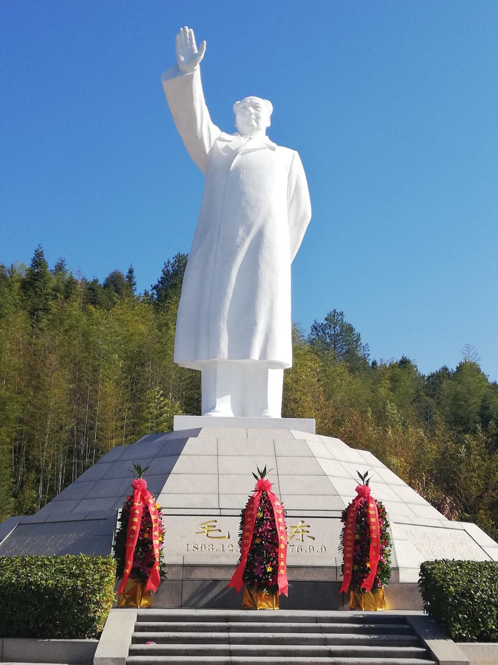 在黄部长一行离开后,我们便来到了毛主席纪念园。毛主席雕塑前赫然摆放着福建省委、中共中央宣传部和中央军委政治工作部敬献的花篮。我们也按照瞻仰礼仪要求,向毛主席塑像三鞠躬,敬献了鲜花,并围绕雕像行走一周。当参观完,再回到古田会议会址廖氏宗祠时,已经是中午11点了。廖氏宗祠及其后背的“古田会议永放光芒”宣传标语,在阳光的照射下显得熠熠生辉。廖氏宗祠的外面和里面,站满了前来研学的四、五年级的小员工,我们就在拥挤的人群中,结束了参观。