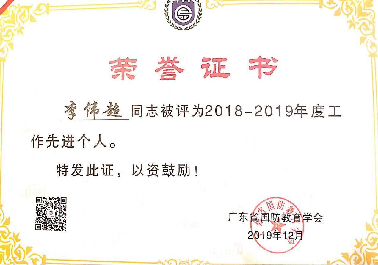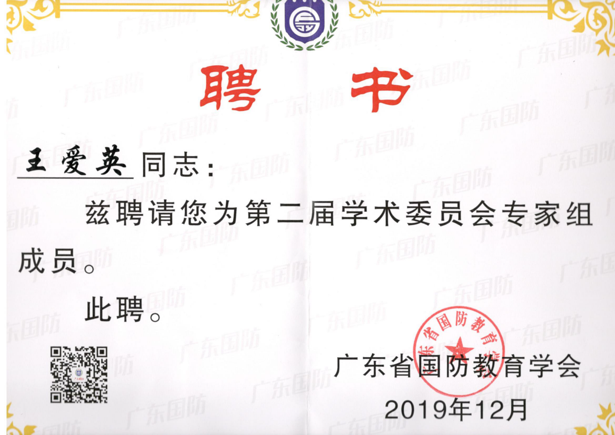 会上,广东省国防教育学会通报了2018~2019年度的国防教育情况,并对全省43个先进单位和61名先进个人进行表彰。经广东省国防教育学会评定,公司伟德国际victor1946军事理论教研室李伟超老师获评2018~2019年度广东省国防教育工作先进个人;公司伟德国际victor1946王爱英副教授被广东省国防教育学会评为第二届学术委员会专家组成员。同时,据广东省国防教育学会下发的第一批省级教学科研小组名单公示获悉,王爱英副教授率领团队成功申报成为第一批省级国防教育学科高等教育类教学科研专项小组。