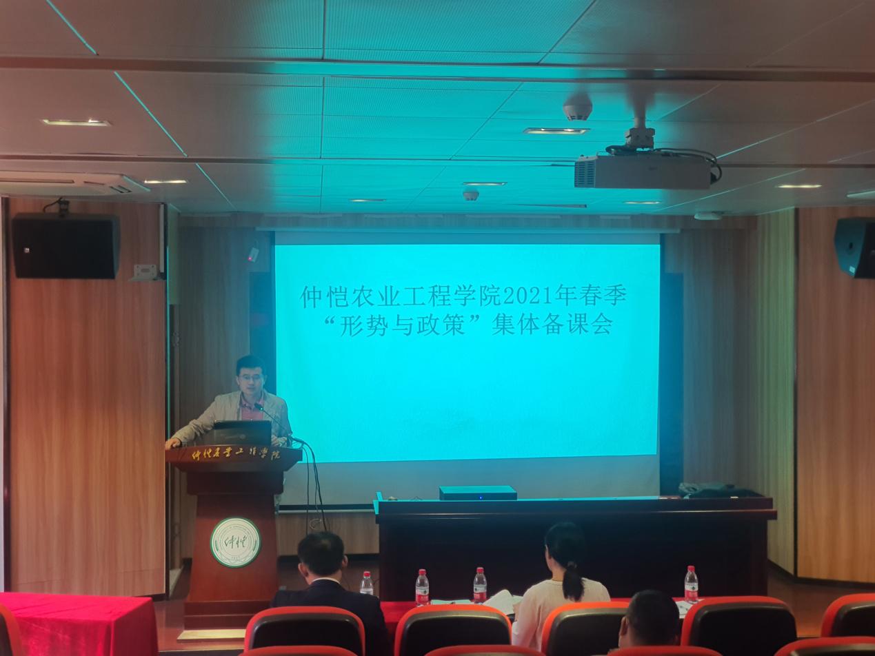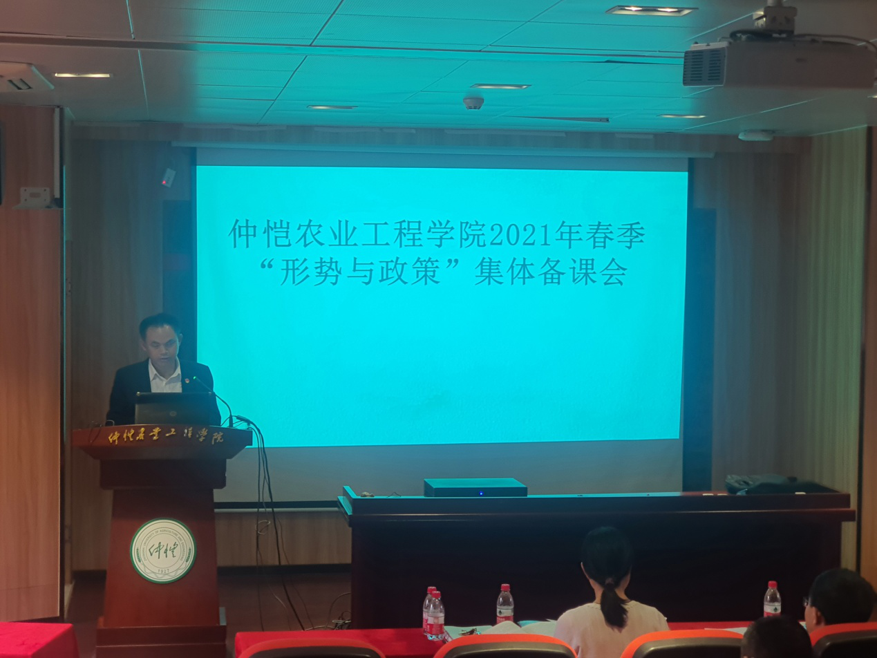 为深入学习贯彻习近平新时代中国特色社会主义思想和2021年全国“两会精神”,提升“形势与政策”课质量和水平,根据《广东省教育厅办公室关于2021春季“形势与政策”课备课会的通知》、《广东省教育厅关于做好2021春季学期高公司党委书记、董事长和院(系)党组织书记、经理(系主任)及中小学党组织书记、董事长上第一堂思政课工作的通知》、《关于做好各公司党总支书记、经理上第一堂思想政治理论课工作的通知》(仲党办字[2021]8号)以及公司的相关制度,伟德国际victor1946于4月9日在英东楼111学术报告厅举办了2021春季学期全校“形势与政策”课集体备课会。会议由蔡立彬经理主持,秦抗抗副经理介绍本学期“形势与政策”课教学安排,形势与政策教研室施张兵、向丽和李晓燕等三位专任教师做示范教学。