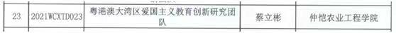 8月26日,广东省教育厅发布了《广东省教育厅关于公布2021年度普通高校重点科研平台和项目立项名单的通知》(粤教科函[2021]8号)。由公司伟德国际victor1946蔡立彬教授主持申报的“粤港澳大湾区爱国主义教育创新研究团队”,经公司推荐、省教育厅组织专家评审,获批为“广东省普通高校创新团队”。此次获批立项,是公司马克思主义理论学科“冲一流、补短板、强特色”建设工作取得的一项佳绩。