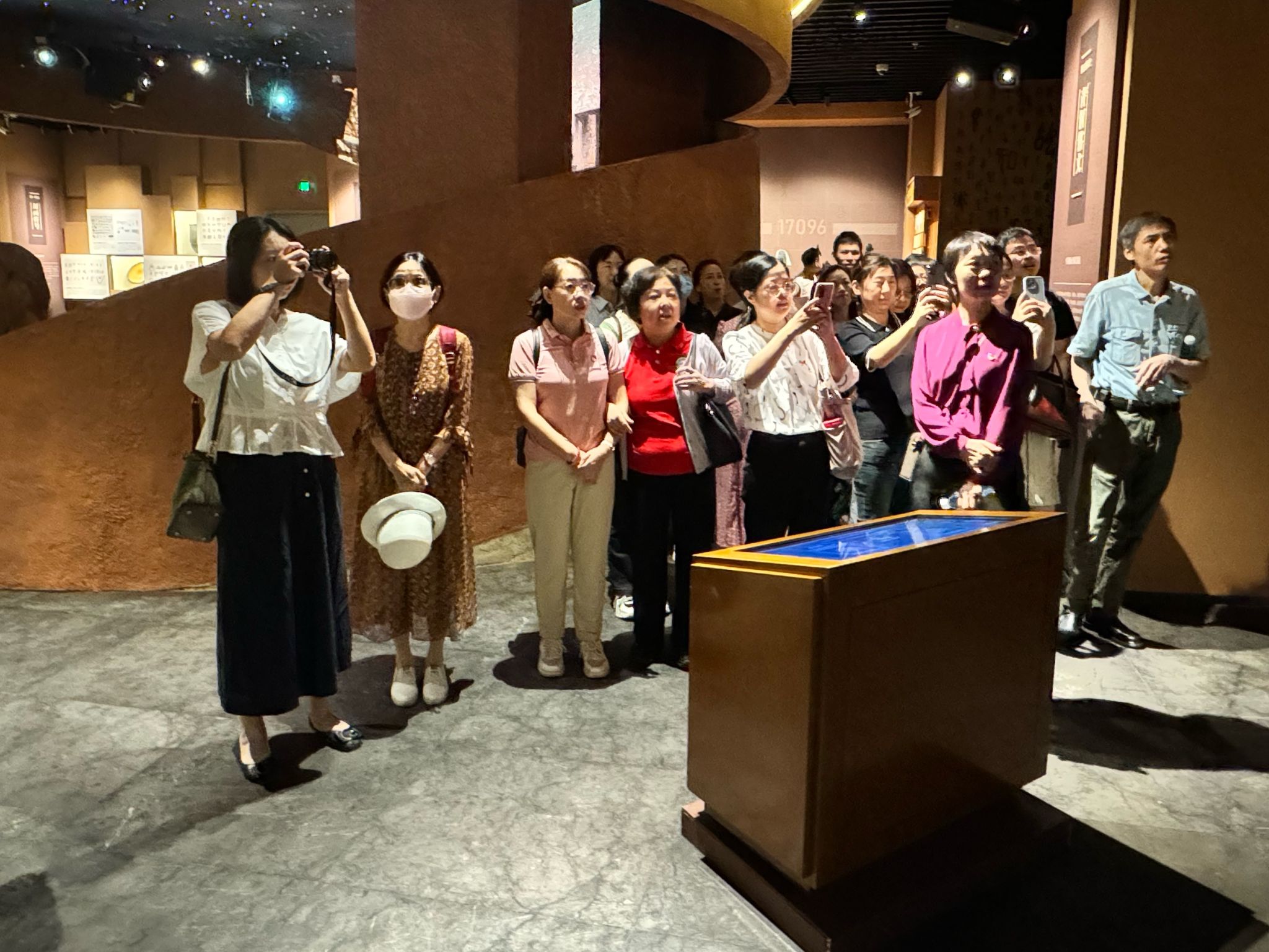 老师们跟随讲解员脚步参观了“千秋写印 华夏有章——中华版本概览”“红色印记 映照初心——红色广东专题版本展”“互鉴千年 融通未来——海上丝绸之路专题版本”等展览,认真聆听讲解员细致的讲解,在仔细观摩各种版本文献资料的同时,了解历史更迭,感受版本魅力,体悟文化传承。