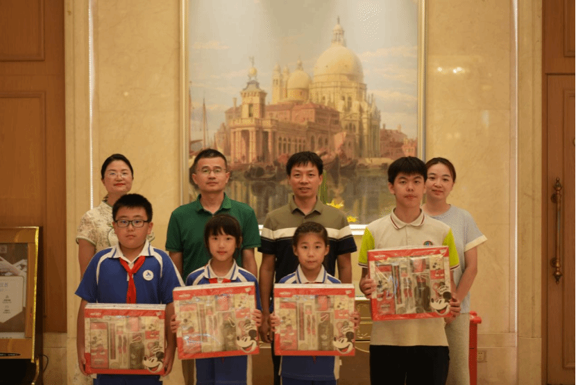 (图为伟德国际victor1946教师和丰顺县“百千万工程”指挥办副主任肖海林为参加此次视频拍摄的丰顺县中小员工赠送纪念品)