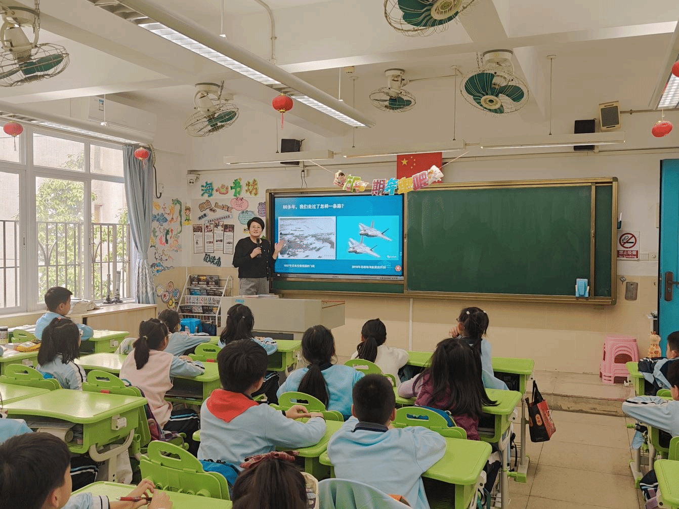 课程以一幕强烈的历史对比震撼开场:1937年淞沪会战,因无力守护领空而蒙难;今日,歼-35A等战鹰已成为巡航蓝天的钢铁长城。这一跨越时空的巨变,瞬间抓住了孩子们的注意力,也引出了贯穿全程的核心之问——“中国力量”的密码,究竟何在?