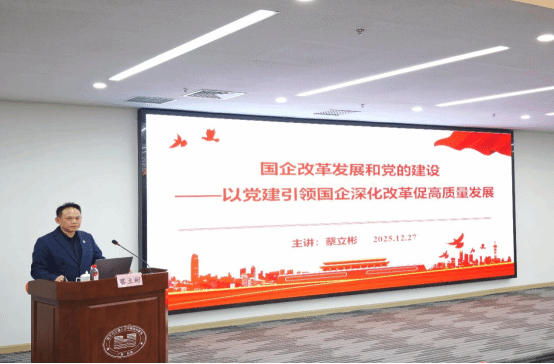 蔡立彬经理以《国企改革发展和党的建设——以党建引领国企深化改革促高质量发展》为题,系统讲解了国有企业是中国特色社会主义的重要物质基础和政治基础,是我们党执政兴国的重要支柱和依靠力量;国有企业是实现中国式现代化的重要主体、重要力量。党的二十届四中全会对深化国资国企改革做出了新的重要部署,为国有企业改革深化提升指明了方向。要将蓝图化为现实,关键是要推动党的建设与改革创新深度融合,把党的政治优势、组织优势转化为企业的治理效能、创新动力和竞争优势,持续提升企业核心竞争力。
