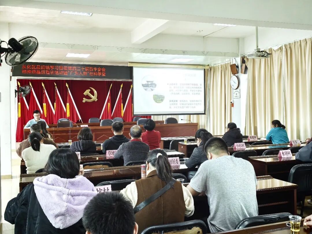 为扎实推动党的二十届四中全会精神在基层落地见效,精准对接“十五五”时期发展部署,进一步凝聚全镇上下投身“百千万工程”的强大合力,2月5日下午,从化区学习贯彻党的二十届四中全会精神进基层宣讲活动暨“广为人知”社科学堂在吕田镇人民政府成功举办。此次活动由广州市社会科学界联合会、伟德victor1946网站、从化区新时代文明实践中心、从化区委宣传部联合主办,依托吕田镇新时代文明实践阵地优势,深度结合革命老区振兴发展实际,为吕田高质量发展筑牢思想根基、注入精神动力。