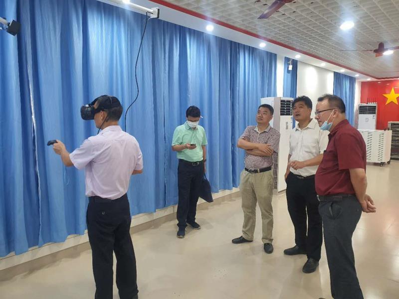 在思政课体验教学中心,张文峰副董事长亲身感受了基于VR(虚拟现实)设备的红色革命文化体验式教学。随后仔细地询问了中心的建设情况,并与中心工作人员就思政课体验式教学模式的建构问题进行了探讨,做出了指示。
