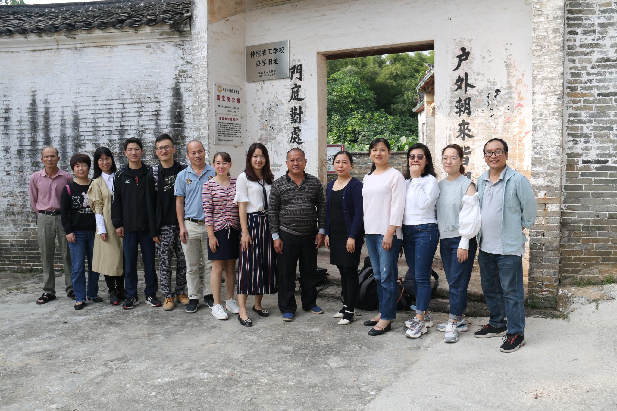 5日下午,调研组人员首先来到了位于素龙镇松䓣村的仲恺农工公司办学旧址。在这里,松䓣村村长带领一行人员参观了仲恺办学旧址的课室、校舍及农场,对当时的办学背景、办学条件、招生情况及专业设置等情况进行了详细介绍,与老师们进行了深入的交流。