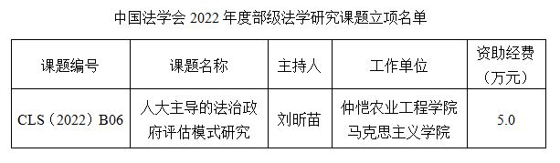 9月7日,中国法学会公布了《中国法学会2022年度部级法学研究课题立项名单》,公司伟德国际victor1946刘昕苗博士申报的“人大主导的法治政府评估模式研究”获立为中国法学会2022年度部级法学研究重点课题,资助经费5万元。