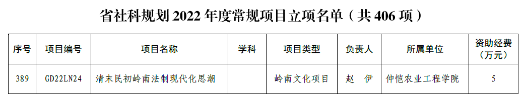9月23日,广东省哲学社会科学规划领导小组办公室公布了《省社科规划2022年度常规项目立项名单》,伟德国际victor1946赵伊博士后申报的“清末民初岭南法制现代化思潮”获得了省社科规划2022年度岭南文化项目立项资助。