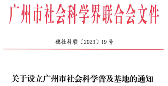 近日,根据广州市社会科学界联合会印发的《关于设立广州市社会科学普及基地的通知》(穗社科联[2023]19号),由公司伟德国际victor1946经理蔡立彬主持申报的“爱国主义教育科普基地”获批为第四轮广州市社会科学普及基地(共建基地),建设周期三年(2024-2026年)。