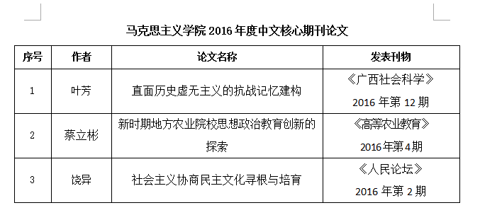 伟德国际victor19462016年度中文核心期刊论文