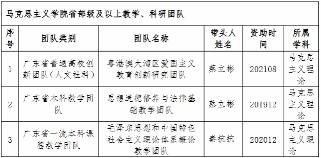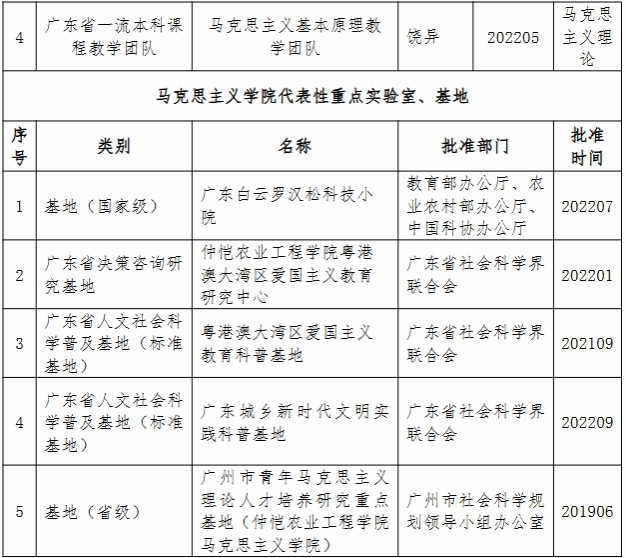 伟德国际victor1946除了有国家级平台1个、省级平台5个、广州市平台2个之外,还有6个校级研究机构,分别为:党建与德育研究所、农村社会发展研究所、中国特色社会主义理论体系研究所、仲恺文化研究所、廖承志与池田大作研究中心、高等教育研究所;有14个教学基地,其中公司廖仲恺何香凝纪念馆既是广东省文物保护单位,也是广州市爱国主义教育基地、广东省统一战线基地、中国国民党革命委员会党史教育基地;江西泰和马家洲集中营爱国主义教育基地既是红色旅游基地,也是爱国主义教育基地和统一战线传统教育基地。基地总体上按照课程教学需要,定期组织员工实地考察,开展合作研究。在基地建设中,本学科结合农业院校特点积极创新思政课教学,注重劳模精神、劳动精神和工匠精神的培育,并取得较好成效,于2019年被评为全国劳模文化研究联盟会员单位。此外,本学科还有省级科